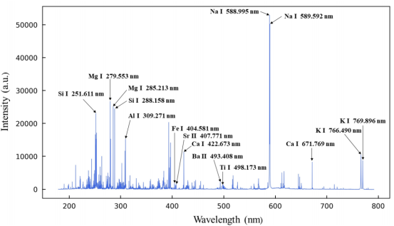 图3 代表性岩石压片样本(GBW07111)LIBS 光谱图