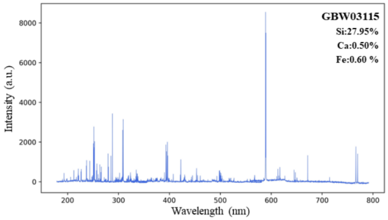 图3 展示了 LIBS 仪器所采集的代表性岩石压片样本的原始光谱图。从图中可以看出,整个光谱的基线比较平稳,能够清晰地识别出 Si、Mg、Ca 等多种元素的特征谱线,信噪比良好,表明该仪器采集的光谱能够满足分析的需求。
