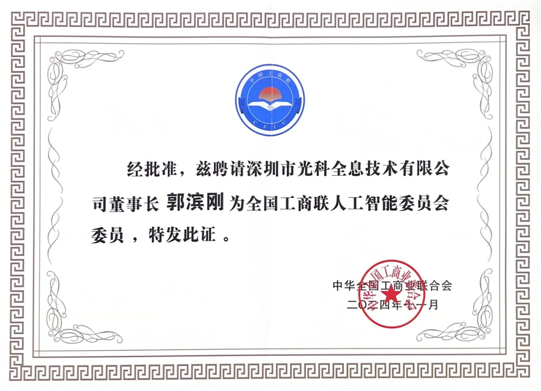 光科全息董事长郭滨刚受聘全国工商联人工智能委员会委员