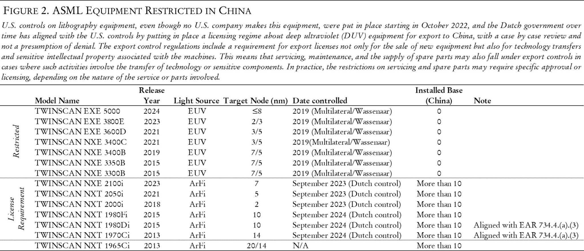 因此,新规则将试图弥合三国政府之间的现有分歧,同时也拖累了韩国这个重要的设备和备件供应国,同时也为日本和荷兰提供了一些政治掩护。后两者担心北京的潜在报复可能会影响重要的技术领导者和国家冠军,例如荷兰的全球光刻领导者 ASML 和日本的 TEL、Nikon 和 Canon。尤其是日本,它仍然担心北京可能会限制镓和石墨的出口,这些关键矿物的日本电池制造和半导体材料制造商仍然严重依赖中国的来源。因此,新规则包括对某些国家/地区的豁免,例如荷兰、日本和韩国,作为这些国家/地区相对于中国的保险。然而,这些政府很可能在某种程度上默许了该规则,即随着时间的推移,他们将与该规则的精神保持一致,并鼓励国内公司逐步限制对“实体上市”公司和设施的部分销售。这种默许可能是由于商务部警告说,如果这些国家不开始遵守,商务部可能会面临国内政治压力,要求对中国公司的外国供应商实施控制。