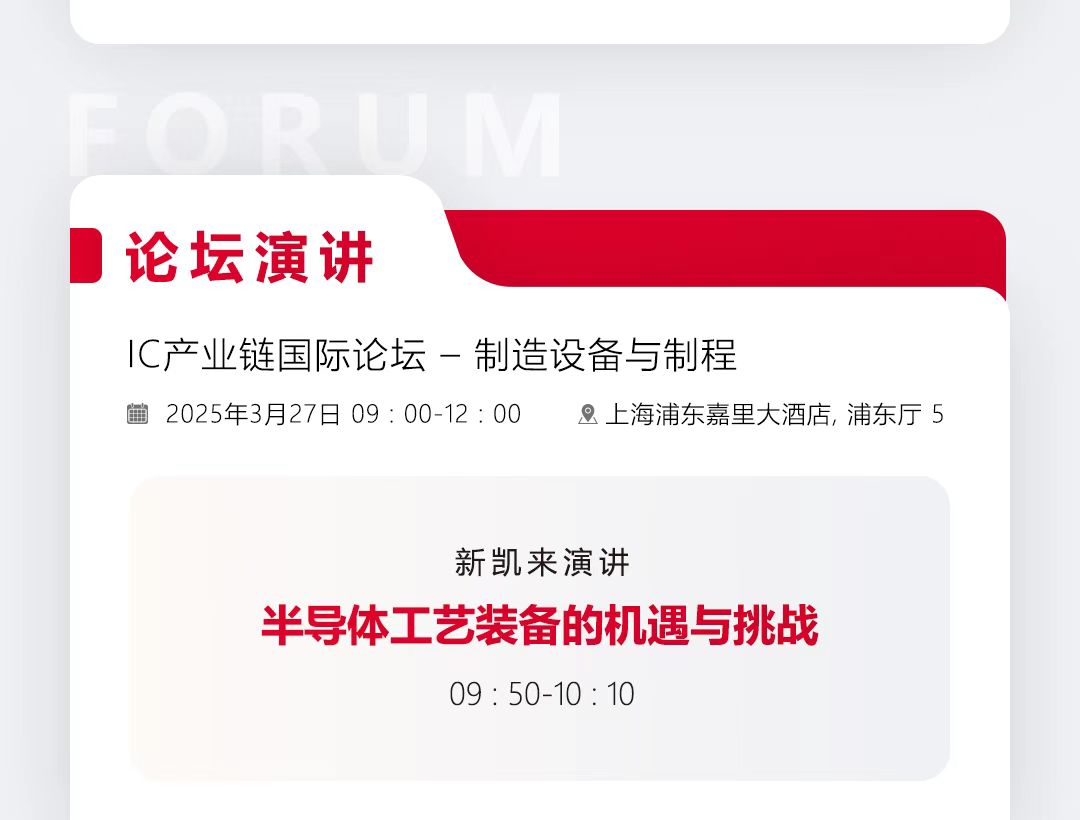 SEMICON2025展会精彩继续,明天将有新凯来的演讲《半导体工艺装备的机遇与挑战》以及新产品发布会。让我们共同见证和期待国产半导体设备的新世界和新选择。