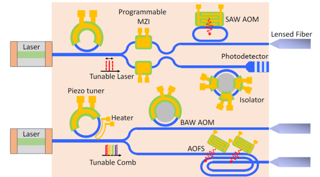 节省空间也是一项关键优势。由于MEMS致动器可以直接制造在光子结构旁边或上方(即单片集成),因此可以实现紧凑的布局,从而将数千个光学元件密集地集成到PIC中。事实上,包括PZT在内的薄膜压电材料以及新兴的无铅薄膜(例如KNN)能够在很小的体积内实现高驱动力,并可在吉赫兹频率下进行声光调制。这并非理论上的设想,学术研究已经证实了这一点。