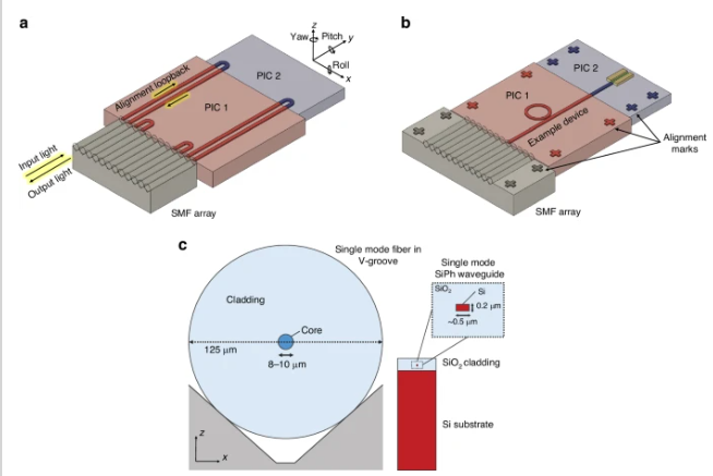 图3:集成光子学中光纤与芯片组装中的对准技术