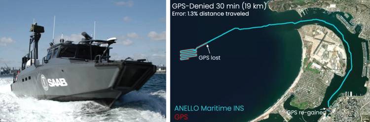 图 4 2025 年圣地亚哥 AFCEA 西部展上,ANELLO 基于硅光子陀螺仪(SiPhOG)的海事惯性导航系统在萨博 Enforcer 3.1 无人艇上完成无全球导航卫星系统(GNSS)信号演示。(来源:ANELLO Photonics)