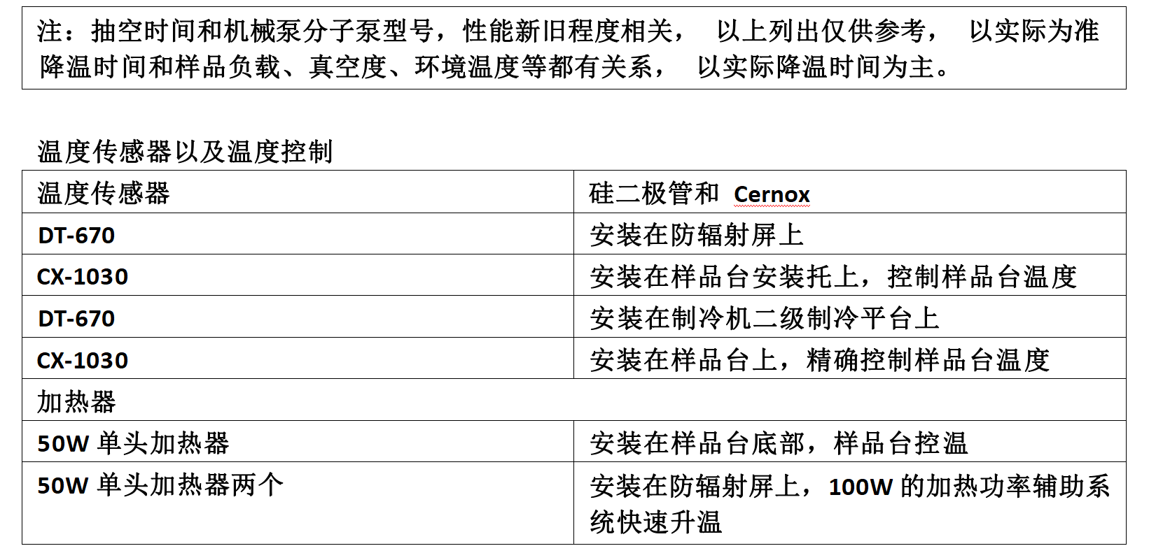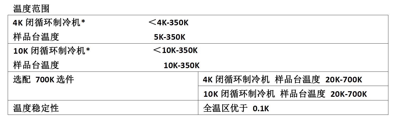 2、高温选件温度范围:20K 到 700K