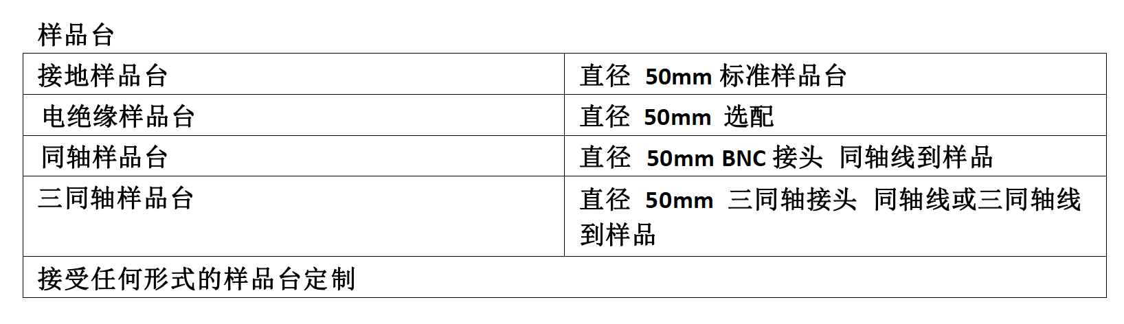 10、各种样品架适于低噪音,高频,高阻测量