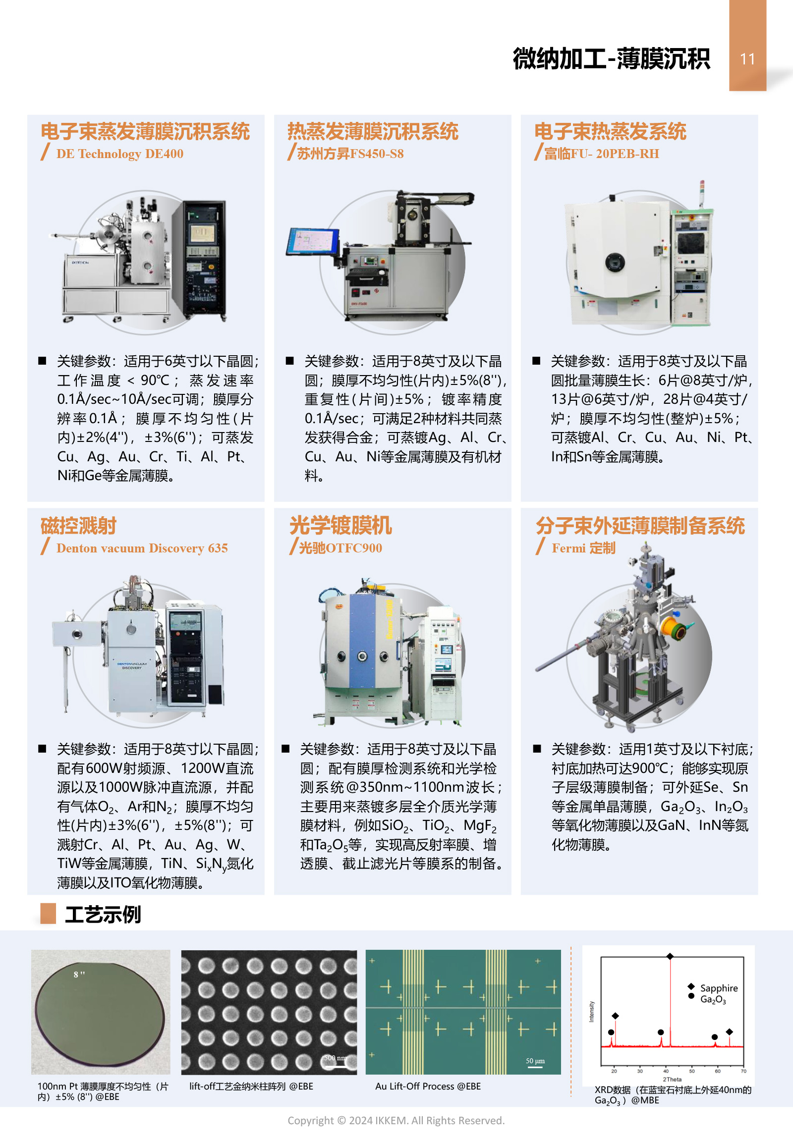 高纯度单色滤光片制备 滤光片是一种利用薄膜干涉、材料吸收或散射等机制,选择性透射、反射或吸收特定波长光的光学元件。实验室工程师针对目前结构色滤光片制备过程中材料薄膜厚度控制精度较差问题进行相应的工艺优化,利用电子束蒸发薄膜沉积系统、电感耦合等离子体增强型化学气相沉积系统和光谱椭偏仪,通过光谱椭偏仪测得实际薄膜厚度并不断优化电子束蒸发薄膜沉积系统、电感耦合等离子体增强型化学气相沉积系统各项工艺参数,成功将电子束蒸发薄膜沉积系统误差范围从±3nm优化至±1nm、电感耦合等离子体增强型化学气相沉积系统误差范围从±7nm优化至±3nm,从而实现了高纯度单色滤光片的制备。该工艺的优化可更好服务二元光学器件、MEMS芯片等领域,有效拓宽平台的服务领域。