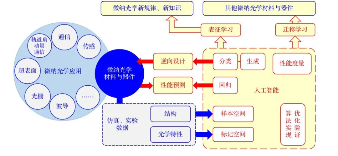 微纳光学材料与器件是光通信、光传感、生物光子学、激光、量子光学等诸多光学领域的关键。目前微纳光学设计主要依赖传统数值方法,存在依赖计算资源、创新效率低、得到全局最优设计困难的难题,是当前微纳光学设计的瓶颈。人工智能(artificial intelligence,AI)目前已经在多个学科开展应用,带来了科学研究的新范式。