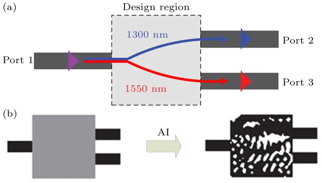 ▲图 5 波长解复用器 (a) 结构图; (b) 逆向设计过程