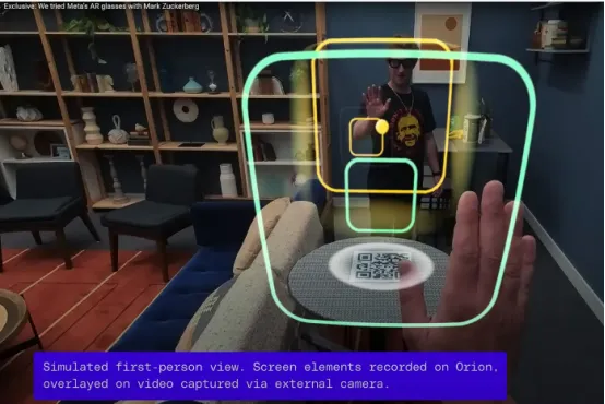 The Vergecast播客视频讨论了一些实用性问题及其相关视频《独家:我们与马克·扎克伯格一起尝试了Meta的AR眼镜》,提供了更多关于体验的信息。值得庆幸的是,与Meta或其他(模拟的)通过光学的视频不同,The Verge明确标注了这些视频为“模拟”(以下为屏幕截图)。