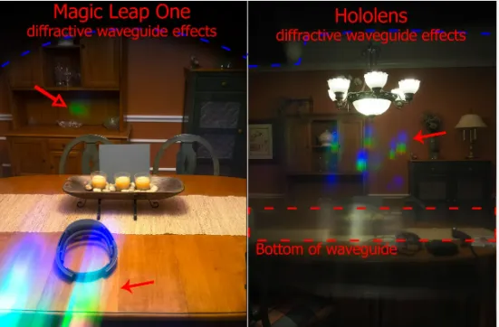 在亚当·萨维奇的《测试》中(约5:10),Bosworth说:“波导本身是纳米蚀刻在碳化硅上,这是一种具有超高折射率的新材料,可以让我们最大限度地减少光子的损失,尽量减少从世界中捕捉到的光子数量,从而减少诸如鬼影、雾霾和彩虹等伪影,同时提供您所需的视场。虽然它不是完全无伪影,但非常接近无伪影。”我欣赏Bosworth在强调其波导技术优势时能够及时修正自己过于夸大的说法(与引言中提到的Hololens的Kipman不同)。如果他们能让一些独立专家研究并给出意见,我会更加放心。
