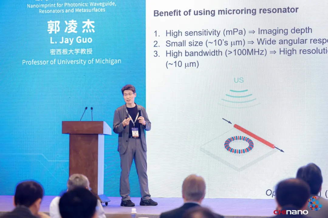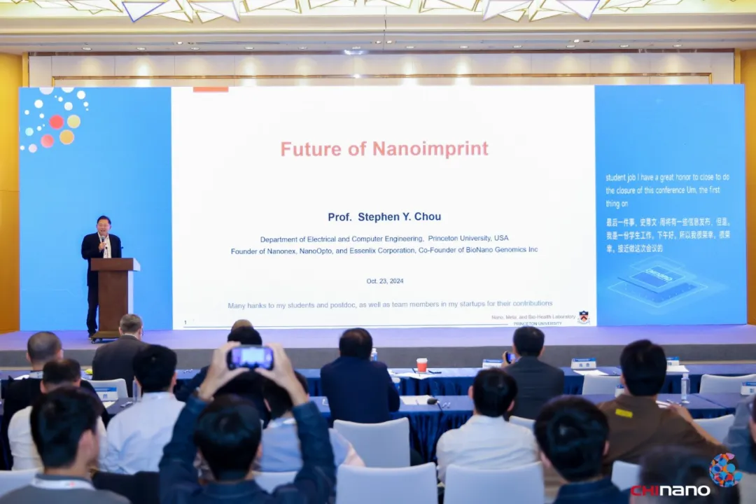 在大会的最后,“纳米压印技术之父”普林斯顿大学周郁教授发表了精彩的压轴演讲。他不仅对大会进行了深刻的总结,还与参会嘉宾、学者共同探讨了纳米压印技术的未来发展趋势和方向。周教授的发言极具前瞻性,为该纳米压印技术在更广泛领域的应用提供了宝贵的指导和启示,进一步坚定了业界对于纳米压印技术发展潜力的信心。