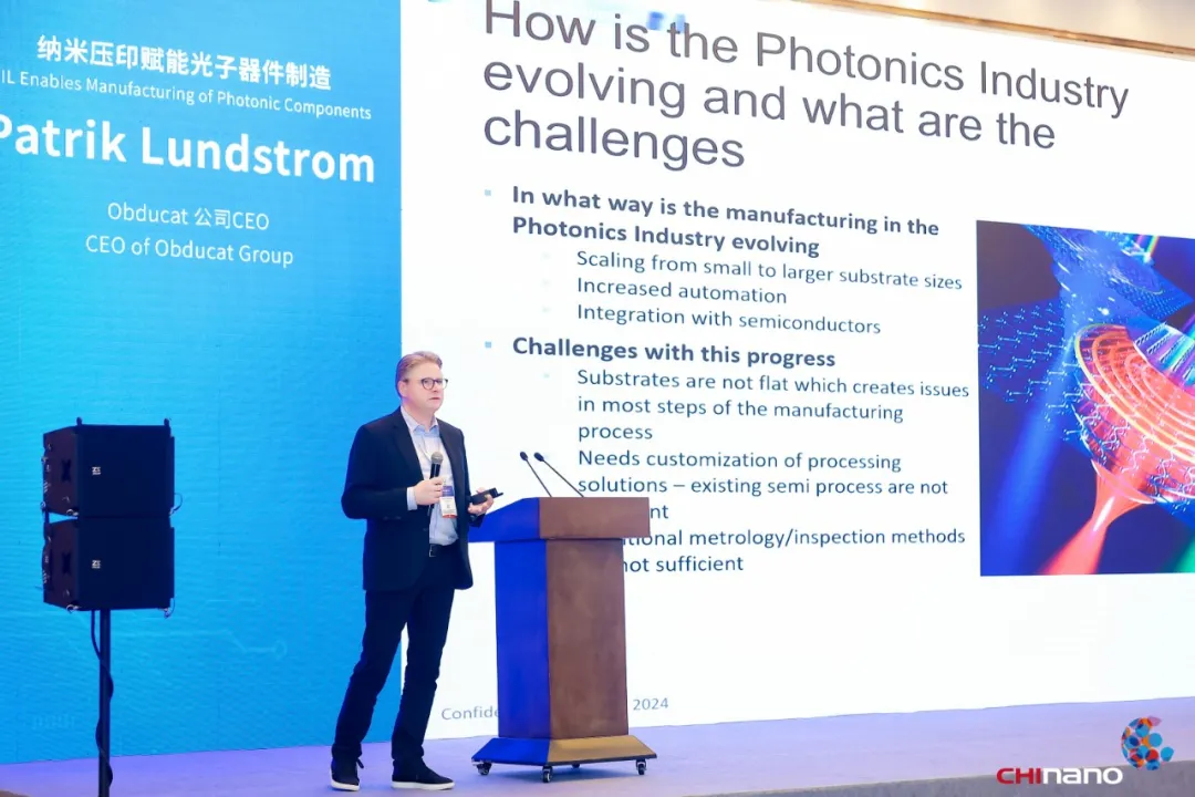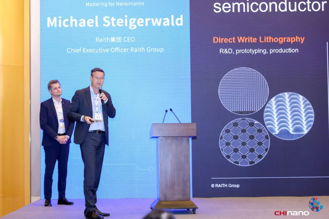 来自瑞典Obducat公司CEO Patrik Lundstrom带来了最新的纳米压印设备以及配套设施,助力纳米压印技术在不同领域的产业化应用;来自德国Raith公司CEO Michael Steigerwald为参会者展示了Raith公司电子束光刻以及其它纳米压印模板加工设备,为纳米压印技术产业链的最前端——高精度、高分辨率模板的制造提供了必要保证和多种选择。本届大会承办方苏州新维度微纳科技有限公司总经理罗刚剖析了构建纳米压印全产业生态链的重要性。