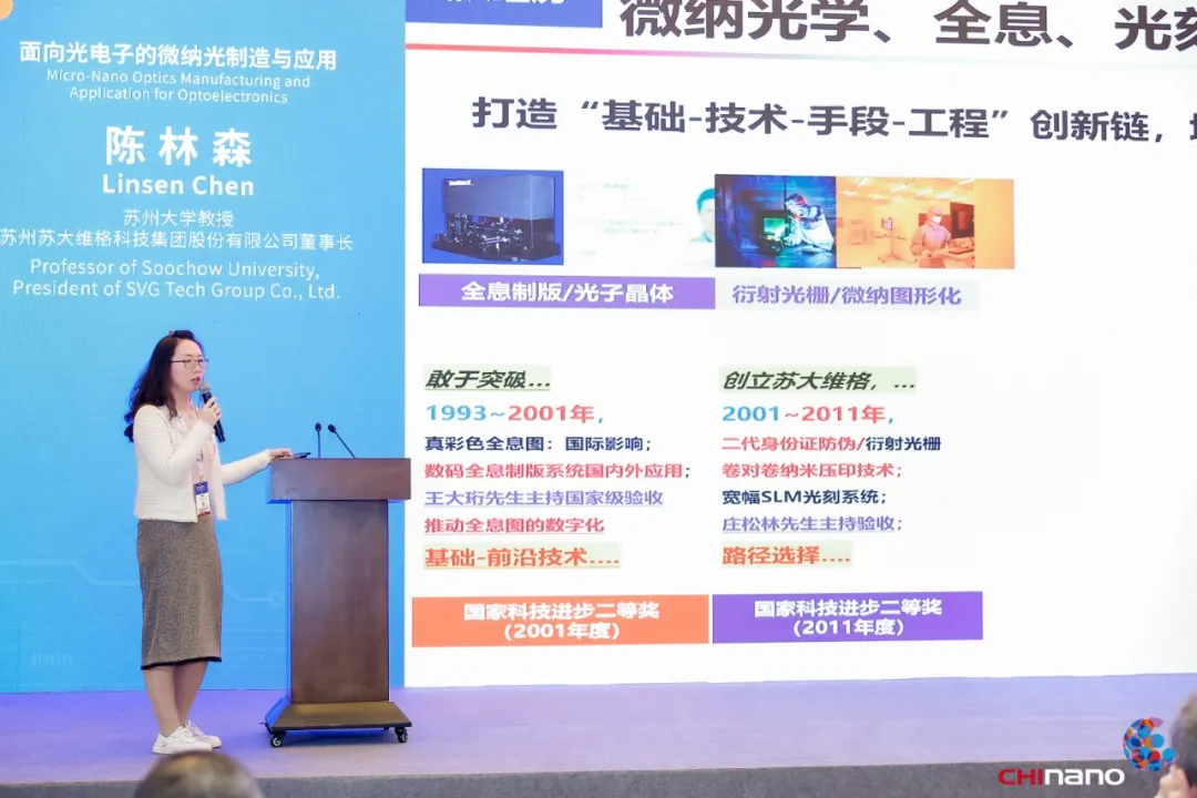 苏州工业园区独墅湖科教创新区党工委书记、姑苏实验室常务副主任许文清出席大会并致辞。他表示,纳米压印技术是当今科技发展的前沿领域之一,其广泛应用于微纳光学、半导体、生物芯片等行业,对相关行业的发展有着极其重要的推动作用,是苏州地区重点发展的技术和产业,对苏州未来经济的发展有着积极的作用。