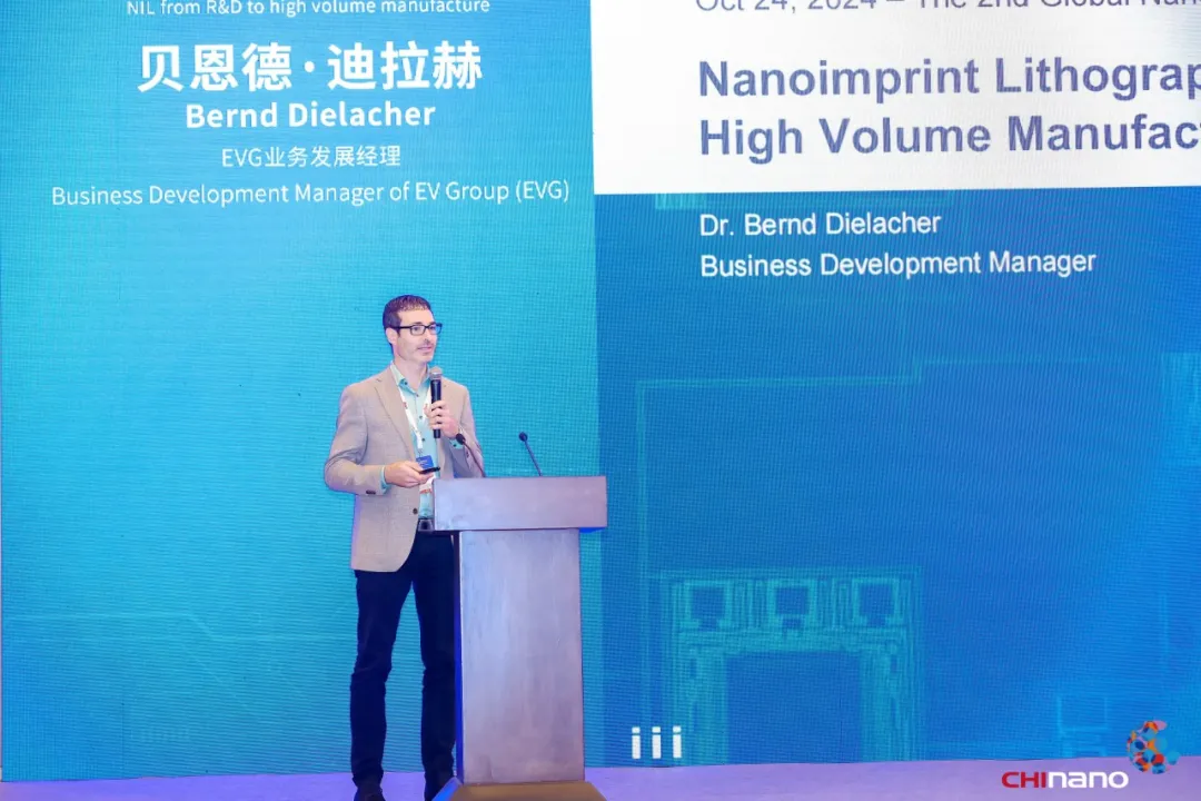除此之外,大会还邀请到了苏州苏大维格科技集团股份有限公司董事长陈林森教授、青岛天仁微纳科技有限公司董事长冀然、慕德微纳(杭州)科技有限公司总经理杜凯凯、帆宣系统科技股份有限公司高级经理赵崇闵、上海澈芯科技有限公司总经理彭博方、EVG 业务发展经理贝恩德·迪拉赫、深圳市微纳制造产业促进会会长王大伟等给参会者带来了精彩报告。