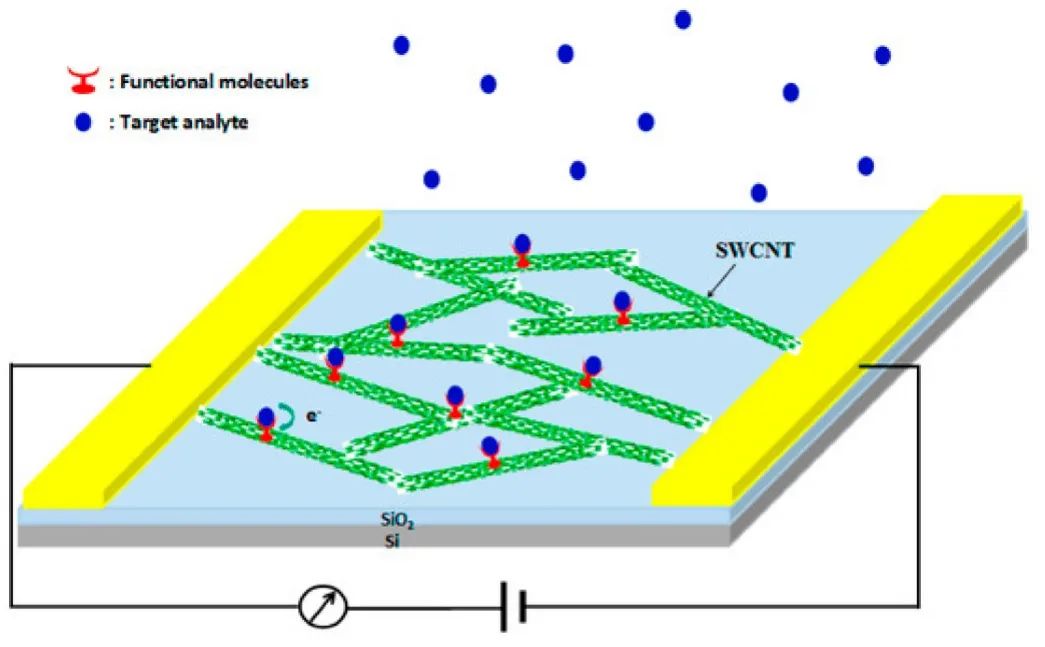 图5 基于碳纳米管的化学电阻式传感器架构示意图