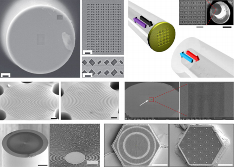 • a 具有不同金(Au)超原子的超构透镜扫描电子显微镜(SEM)图像。