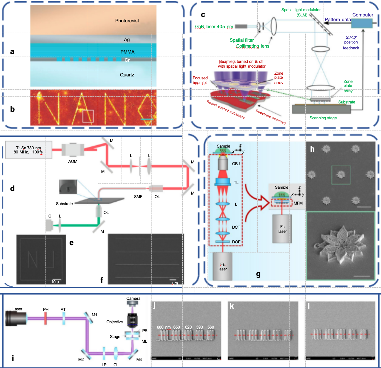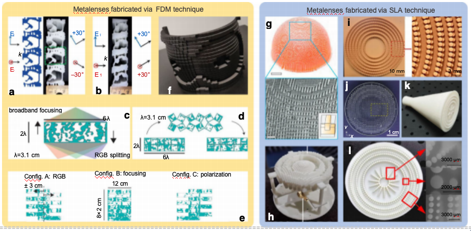 • Ndao等人(参考文献139):通过上述工艺制备渔网结构消色差超构透镜(图5j),EBR定义纳米结构形状,使单元设计具备多自由度。