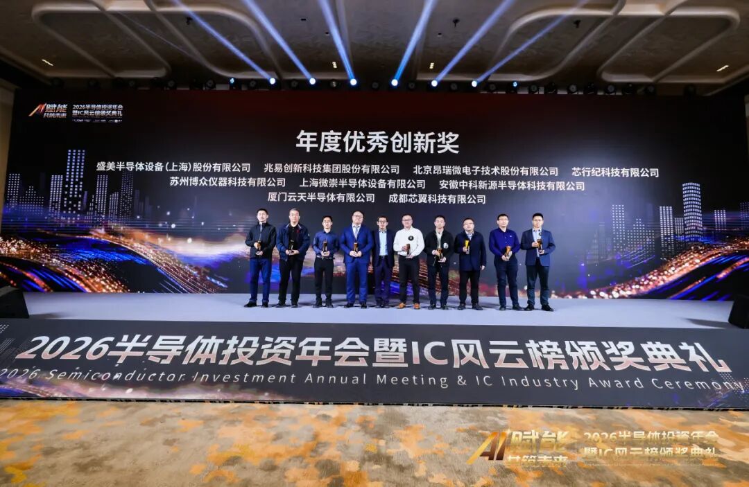 2025 年 12 月 20 日,上海前滩华尔道夫酒店群星汇聚 —— 由半导体投资联盟、集成电路投资创新联盟联合主办,ICT 知识产权发展联盟协办,行业权威平台爱集微承办的 “2026 半导体投资年会暨 IC 风云榜颁奖典礼” 盛大举行。作为中国集成电路产业的 “年度风向标盛会”,本次活动吸引上市公司、投资机构及学术界等百余位行业精英齐聚,共话 AI 赋能下半导体产业的未来图景;而同期揭晓的 “IC 风云榜”,更以其严苛的评选标准与广泛的行业认可度,成为衡量中国 IC 企业创新实力的核心标杆。